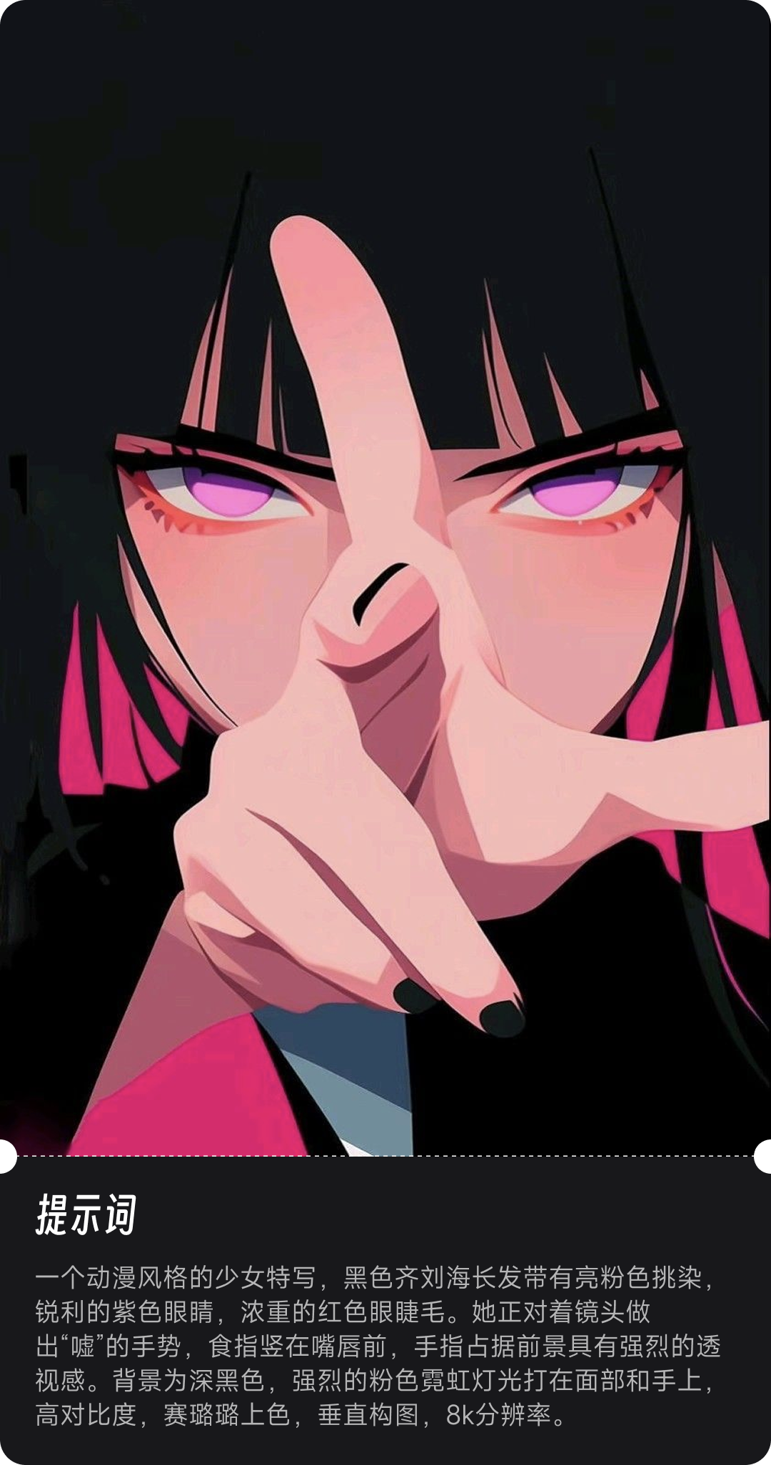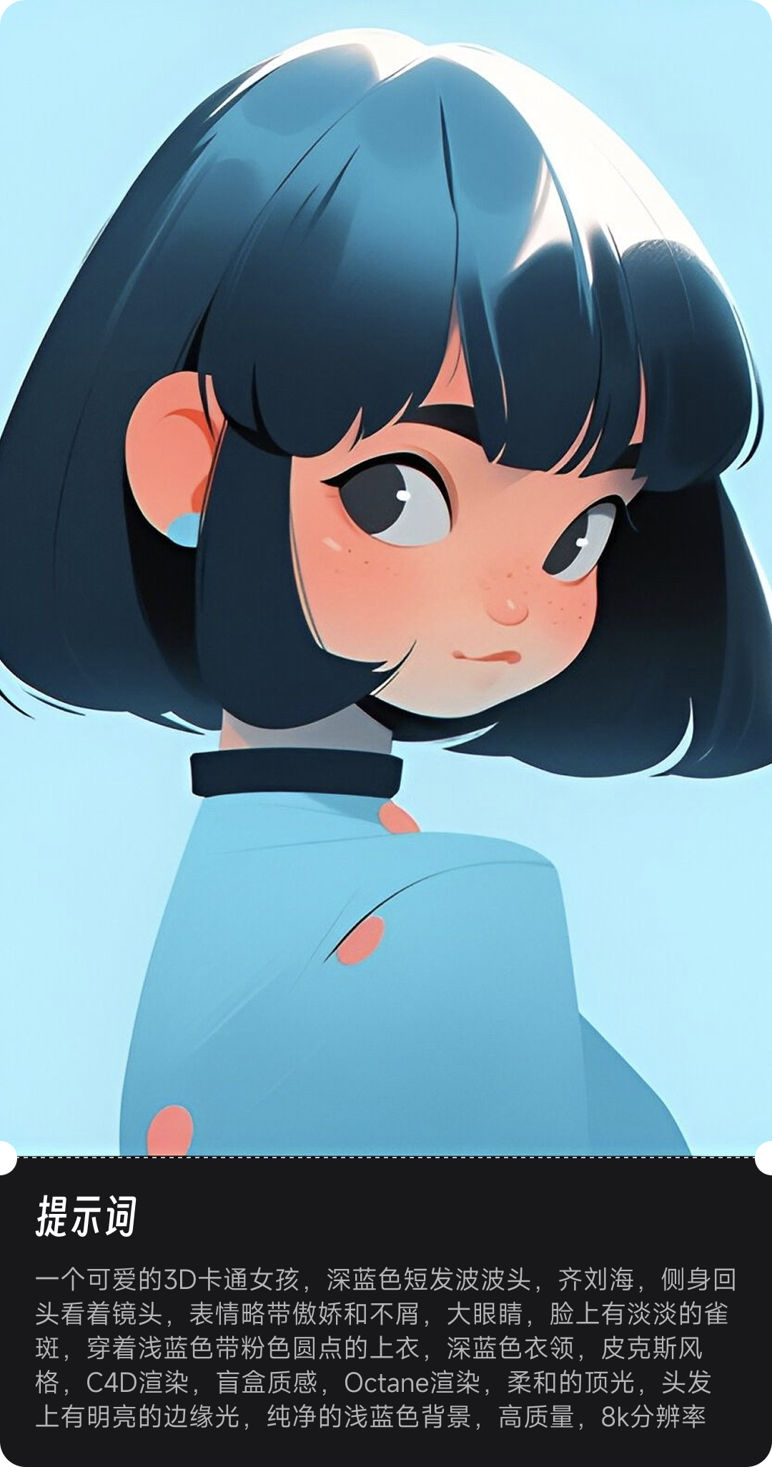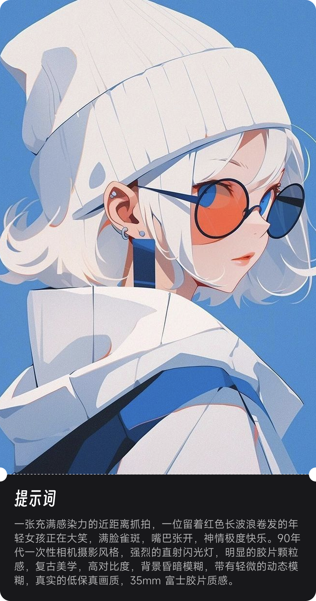 提示词分享卡会把原图和分析出的提示词排版成一张图片。你可以保存到本地,也可以复制后粘贴到社交软件、笔记工具或设计文档中。